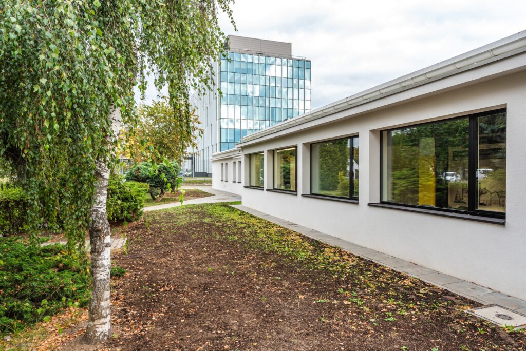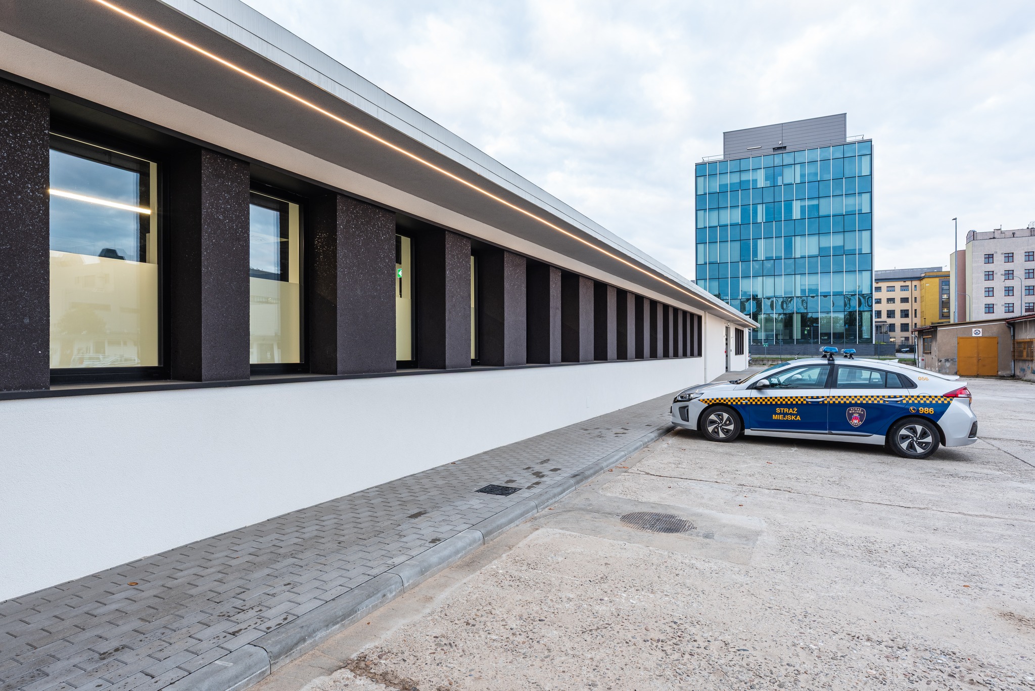 Przebudowa dawnego budynku magazynowego na nowoczesne łaźnie i zaplecze socjalno-biurowe dla funkcjonariuszy Straży Miejskiej Miasta Krakowa.